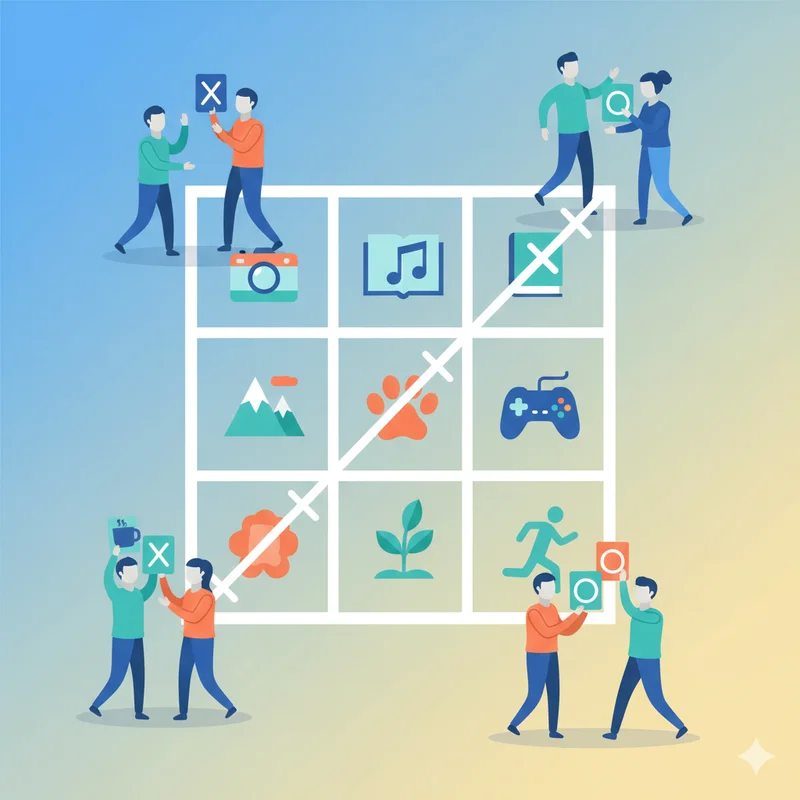 "Welcome everyone! Today we're playing Icebreaker Tic-Tac-Toe. You'll fill a grid with your personal hobbies, then mingle to find people who share them. The first person to get three initialed boxes in a row wins! Let me hand out the grids and explain the theme."